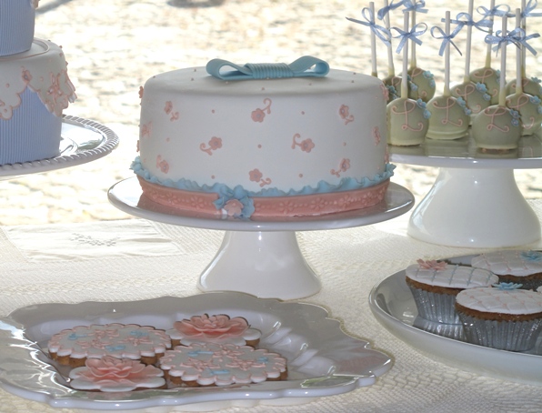 Quando me encomendam uma mesa de doces, é para mim um deleite imaginar a disposição da mesa, que pratos utilizar por forma a alcançar um bonito resultado entre formatos e alturas, e imaginar o design de cada bolo, para que o resultado final seja um conjunto harmonioso de doces.