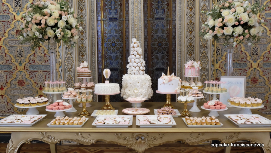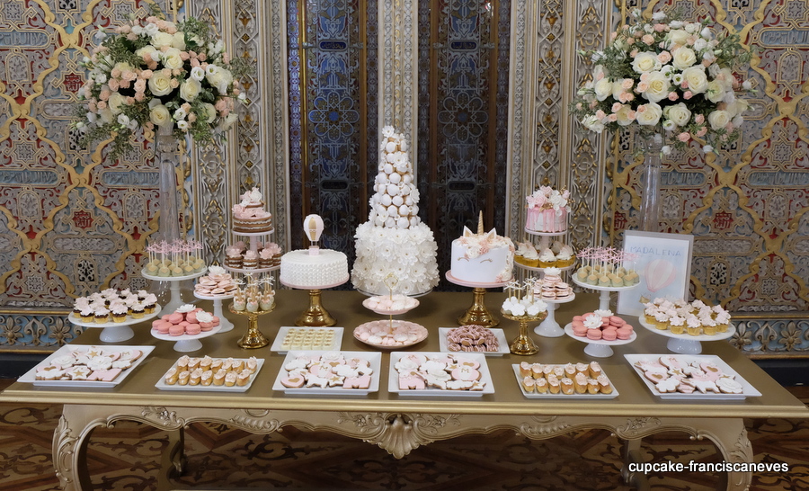 Há meses que andava a planear esta festa, e tudo começou quando vi no instagram um bolo da talentosa anges de sucre que me chamou a atenção e eu tratei de devidamente personalizar para se enquadrar no que eu pretendia para esta mesa de doces: bonita e especial, atenta aos pormenores, em tons pastel verde água e rosa, que eu tanto adoro, com detalhes em dourado, mas simultâneamente contemporânea e descontraída, pois afinal de contas receber tanta gente cá em casa e ter de fazer (quase) tudo sozinha não é nada fácil!!