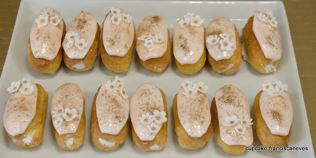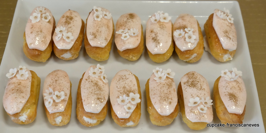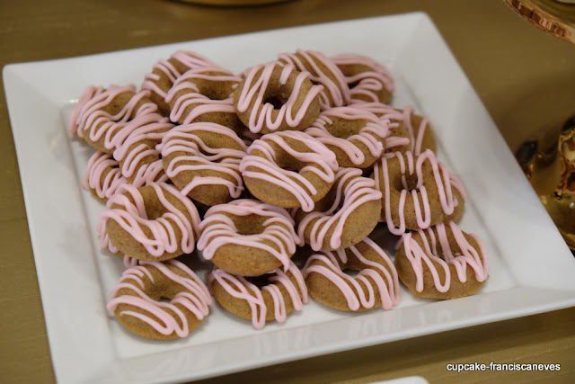 Ao centro, aquelas lindíssimas flores de tecido rosa que a minha mãe trouxe do Brasil, estavam recheadas de brigadeiros de sabores variados: café, nozes, chocolate e os meus favoritos, os de tangerina