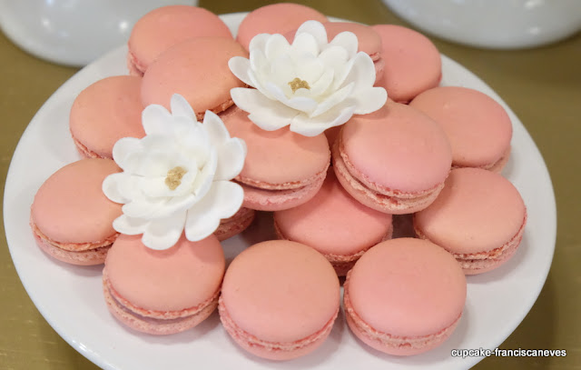 | macarons de framboesa com chocolate negro e de chocolate branco |