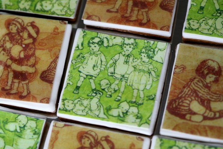 As fotos seguintes são de uma mesa que compuz para o baptizado de uma menina, que já não é bebé, a Madalena, e é uma verdadeira princesa. Como tal, idealizei os doces utilizando uns papéis duma coleção de meninas vintage que eu pessoalmente adoro, comprados na loja 512 ideias, onde encontro sempre todos os materiais para a parte de craft do meu trabalho.