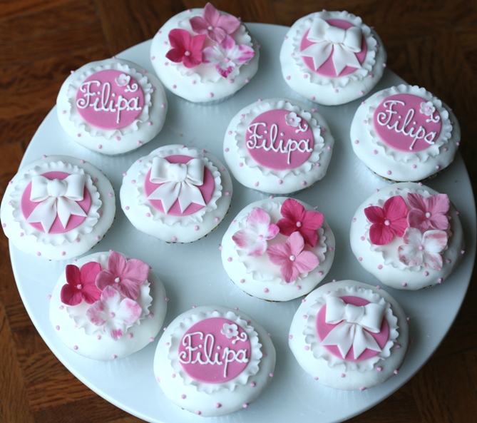 Estes primeiros doces foram elaborados para embelezar a mesa do primeiro aniversário duma menina, e para mim foi uma enorme honra fazê-los pois tinham como destino Palmela.... Vieram buscá-los de propósito ao Porto por gostarem muito do meu trabalho e para mim esse é o melhor reconhecimento que poderia desejar depois de tantas e tantas horas de trabalho no atelier e cozinha da Cupcake!