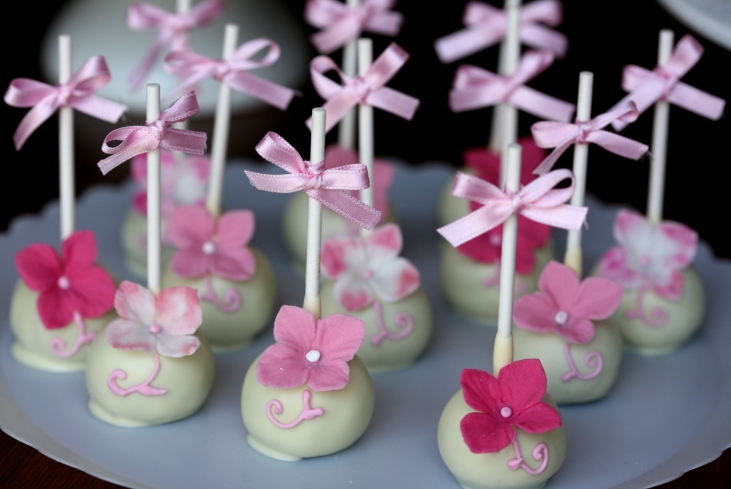 | Os cake pops com laçarortes ficam um mimo |