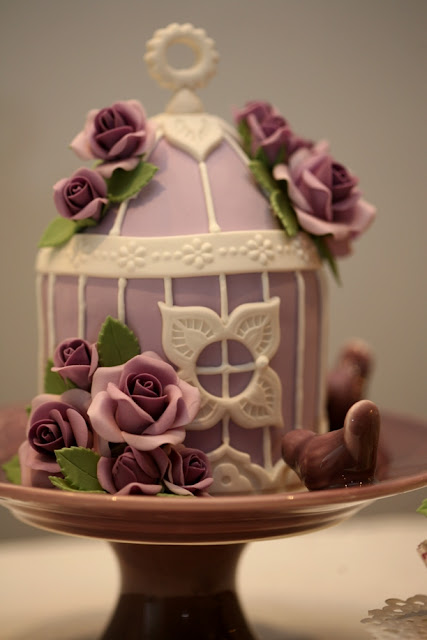 Há alguns dias atrás vi este prato lilás com pássaros lindíssimo e não podia deixar de me lembrar dela, uma vez que é das suas cores favoritas e adora tudo o que tem passarinhos. Comecei logo a imaginar como faria o bolo..... e é claro que tinha de ser de esferovite para ficar para sempre. Já vi várias versões de bolo com gaiolas, o mais famoso é o da Peggy Porschen, minha cake designer preferida, e pensei que não poderia haver melhor ocasião para criar a minha versão.... Espero que gostem!
