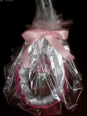 Para terminar fiz ainda um mini bolo em forma de presente, com as cores bem "da moda"!
