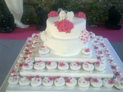 Começo por mostrar as fotos de um bolo de casamento que fiz no Parque da Penha, um espaço que eu adoro, com bolo e cupcakes para todos os convidados: